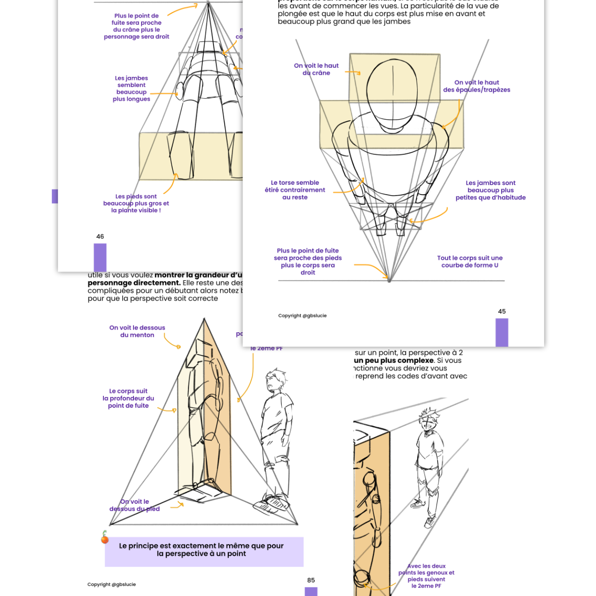 Bien dessiner le corps en perspective peut sembler très compliqué pourtant avec destechniques simples tu seras capablederefaire ton personnage sur n'importe quelle vue avec un ou deux points de fuite !