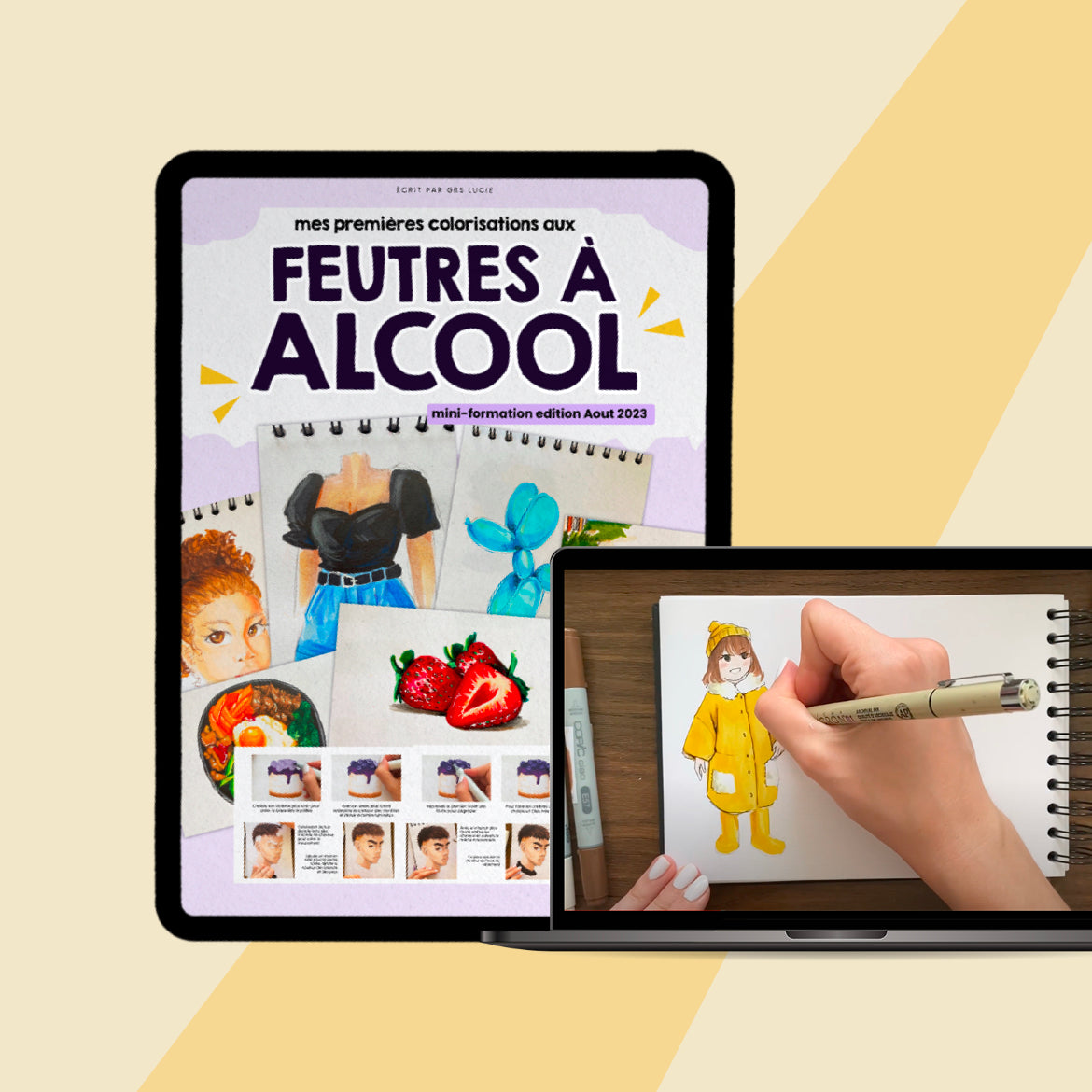 Pour t'expliquer au mieux les feutres à alcool cette édition est présentée comme un petit cours sur l'utilisation des feutres à alcool que tu peux suivre à ton rythme ! Toutes les étapes y sont présentées pour que tu puisses enfin maitriser tes feutres quelque soit la marque et le nombre que tu possèdes !