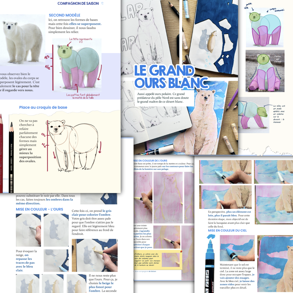 ✅ Découvre la structure de l'ours et comment le dessiner avec des volumes simples à travers des tutoriels détaillés